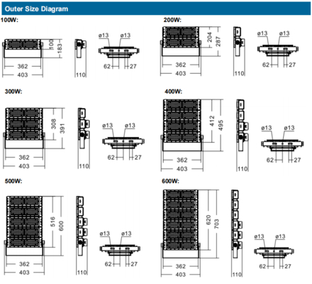 | Driver | Meanwell/Philips/Osram/Lifud/Sosen/Moso/Done/Standard Rectangle Driver optional |