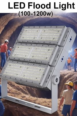 Powerful and Energy-Efficient LED Flood Light for Industrial and Outdoor Applications with silver.